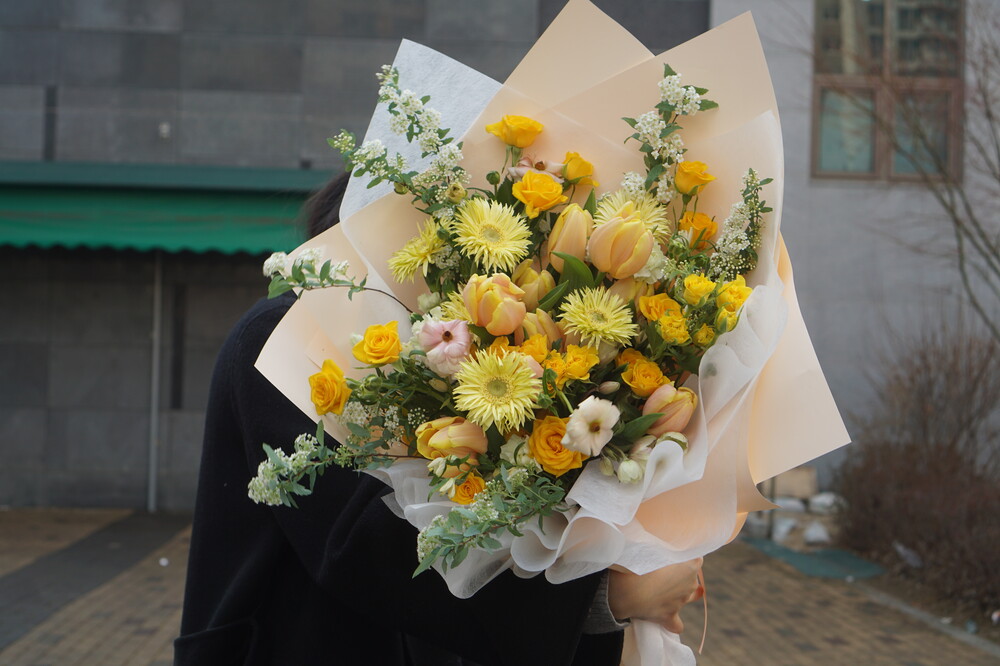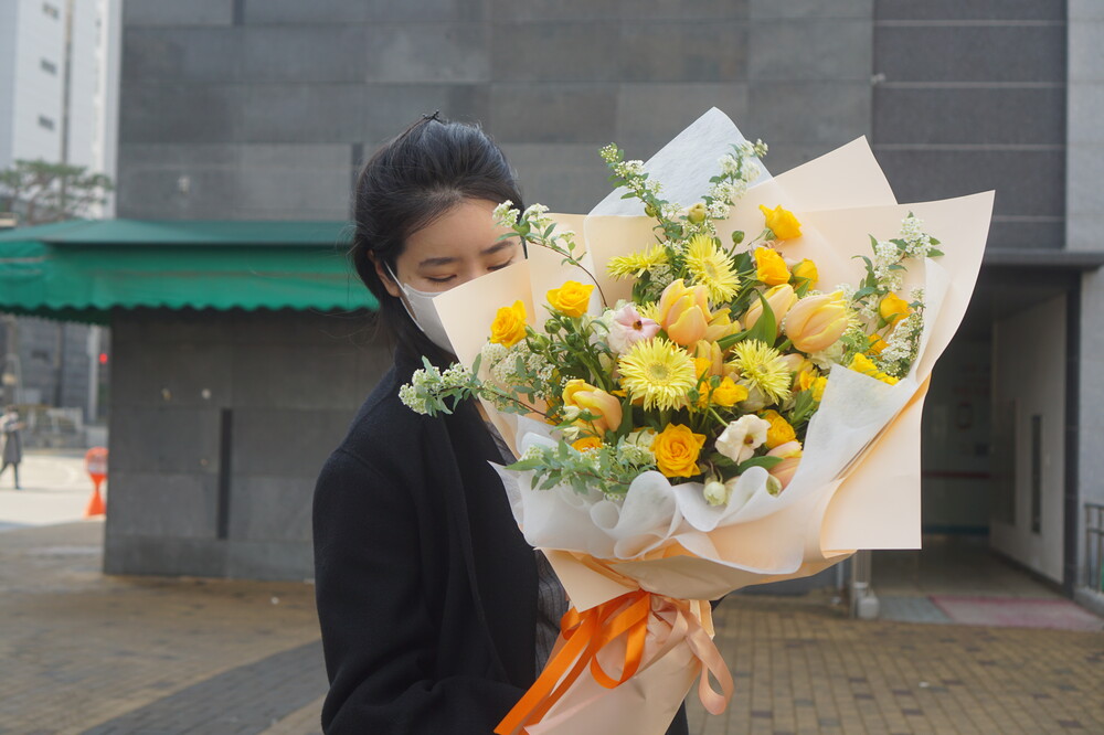 "힘내라, 화이팅 노랑 대형꽃다발"